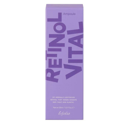 The Esfolio Retinol Vital Ampoule is designed for all skin types, especially those concerned with dullness, lack of elasticity, uneven tone, and the appearance of wrinkles. This powerful Esfolio Anti-Wrinkle Ampoule works overnight to rejuvenate and restore the skin's firmness, elasticity, and radiance. It effectively combats signs of aging and helps maintain youthful skin.